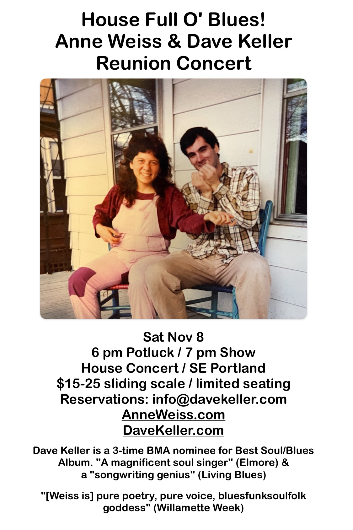 | 11/08/25 | Anne Weiss and Dave Keller | Portland, OR | house concert |